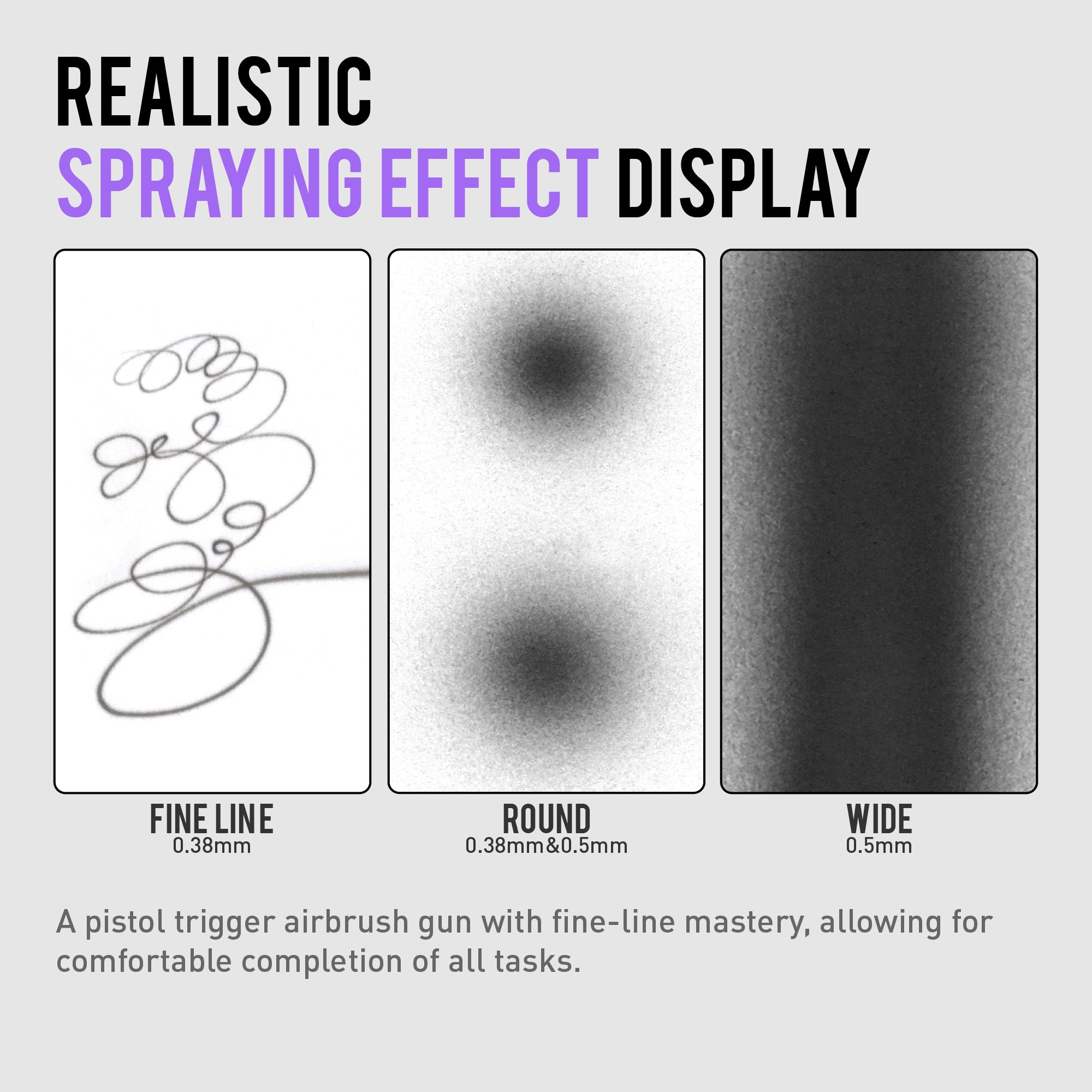 Dank des mitgelieferten Düsensatzes lässt sich die Airbrush schnell an unterschiedliche Anwendungen anpassen. Die 0.35 mm Düse eignet sich ideal für saubere Linien und Detailarbeiten, während die 0.5 mm Düse gleichmäßige Farbaufträge auf größeren Flächen ermöglicht.